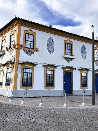 Aveiro is known for its beautiful Art Nouveau architecture style, many of which feature a blue color for motifs and designs on the doors. This design is exhibited in many buildings in the city.