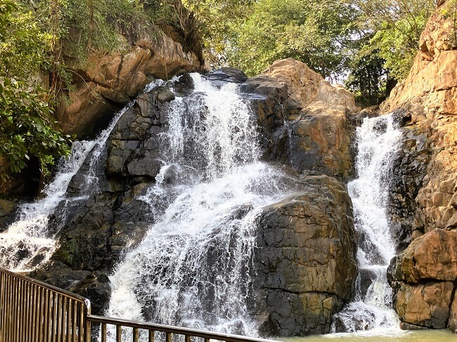There is a dam on the downstream side of the fall covered with green forest and hills. Mornings and evenings are good times to visit to view sunrise and sunset.