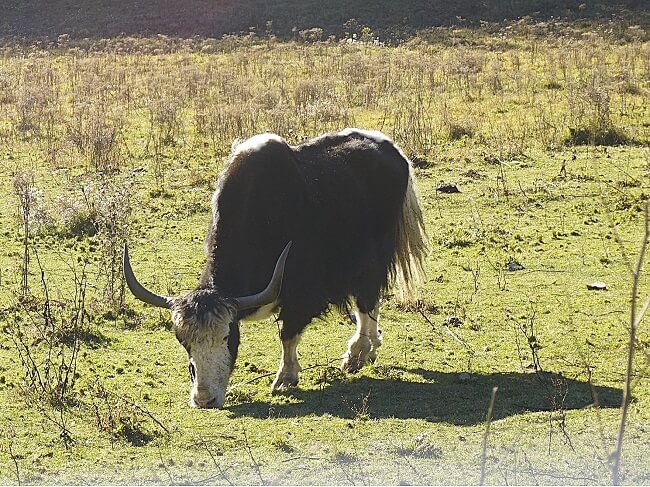 We saw some yaks grazing in the valley. They are domesticated and do not attack. Many tourists pose next to yaks and take photos.