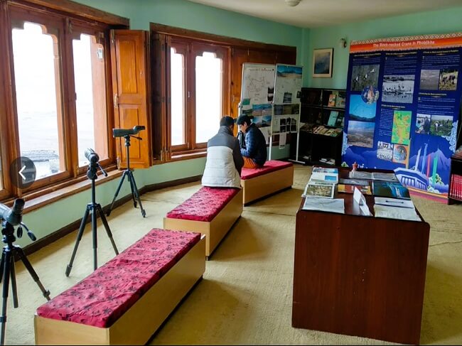 The black necked crane center (part of Royal Society for Protection of Nature (RSPN)) has displays, exhibits, running movies and a ton of information about these exotic birds. Alongside, there are observation centres that offer undisturbed views of the surrounding valleys that are often visited by these birds. The visitors are not allowed to go near the birds but can view them close and observe their behavior through powerful telescopes.