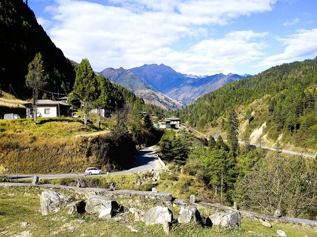 Gangtey valley is located in the center of Bhutan, about a 4 hour drive (168 km) from Paro International Airport and about a 2 hour drive (81 kms) from Punakha valley.